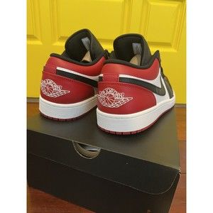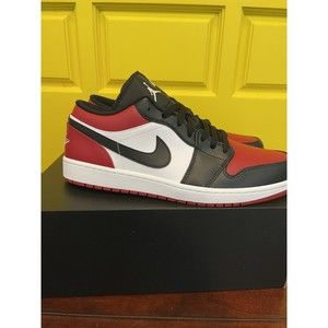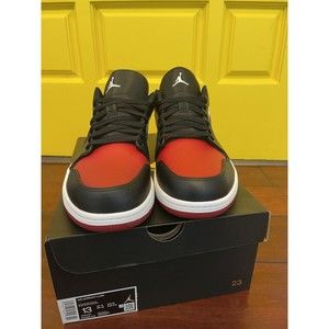 NEW Sz 13 Men’s Nike Air Jordan 1 Low Bred Toe Black Red Retro Shoes 553558-612