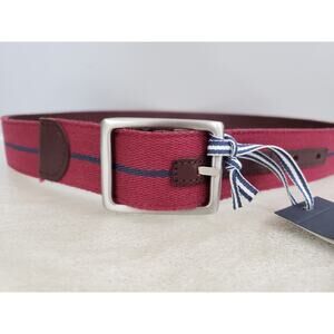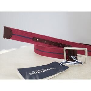 NEW Vineyard Vines Leather Canvas Webbing REVERSIBLE Belt Navy Blue Brown Maroon