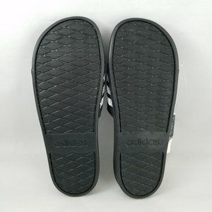 NEW Sz Men 6-13 | Women 7-14 Adidas Comfort Slides in Black with White Stripes
