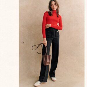 NEW Sézane Dan Trouser Pants Straight Wide Leg Wool Blend Black Sz US 6