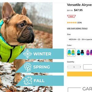 New With Tags. AiryVest M140. Keep your pup cozy, stylish, and ready for any adventure with the AiryVest Reversible Dog Jacket! This ultra-lightweight, water-resistant vest is perfect for chilly autumn walks, cold winter days, or brisk spring outings. Designed with a reversible two-color option (blue and green), it offers both functionality and fashion. The vest features a high-quality zipper for easy fastening, stretchy armholes for comfort, and a lower harness hole for convenient leash attachment. Its compact design allows for easy storage in the included travel bag. Made with synthetic insulation and DWR-treated nylon fabric, it provides warmth while repelling light moisture. Ideal for active dogs who love to run and play in any weather! This size is M40.