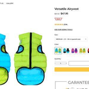 NEW! TAGS ON! NWT AiryVest Reversible Lightweight Dog Jacket - Blue/Green M40