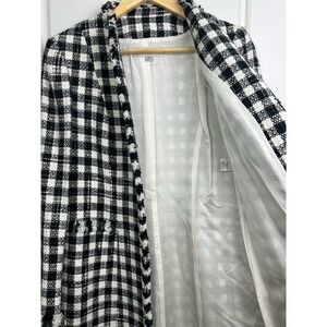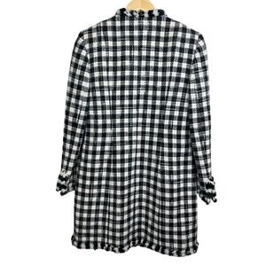 NEW TAHARI 6P Gingham Long Coat Clasp Boucle Tweed Plaid Fringe Black/White