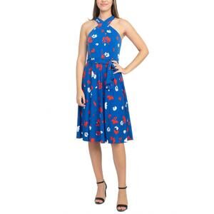 Experience effortless elegance with the Tahari ASL Crossed Neck Sleeveless Dress in a striking Blue Multi floral print, perfect for summer celebrations like Easter. Made from a luxurious blend of 95% Polyester and 5% Elastane, this A-line mini dress is both comfortable and flattering. The standout halter neckline and tie waist design enhance your silhouette, while the zip closure ensures a sleek fit. Ideal for holiday parties, this versatile dress commands attention with its boho chic flair.