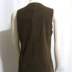 .This is a fabulous brown faux suede button front sleeveless stretch blend jumper sheath mid calf length dress by TALBOTS. It is brand new, in perfect condition and a size 6.
