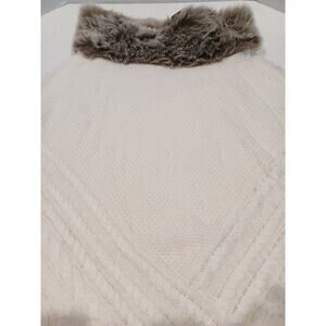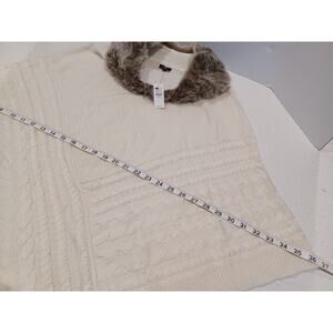 NEW TALBOTS Faux Fur Cable Knit Poncho Sweater Size L