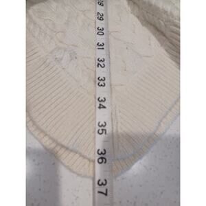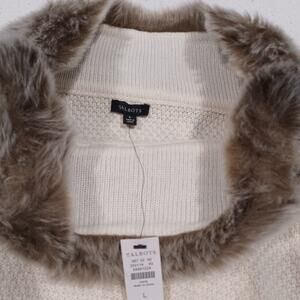 Stay warm and stylish with this beautiful Talbots poncho sweater. This cable knit poncho features a luxurious faux fur trim, adding a touch of elegance to your outfit. Perfect for layering during colder months or as a chic statement piece. The size is Large. Grab it now!