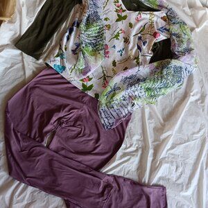 Wear this beautiful new graphic Talbots cotton top paired with these new lavender leggings and bring a lightness and brightness to the cooler months. Pants are made of soft, stretchy polyester. Comes with new coordinated graphic scarf.