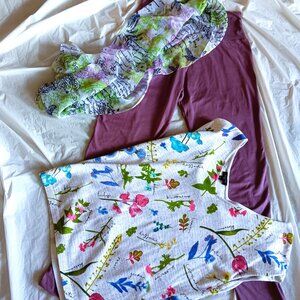 NEW TALBOTS GRAPHIC TOP, MED, W/COORDINATED LAVENDER PANTS, MED, NEW SCARF