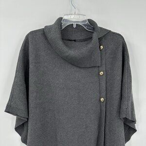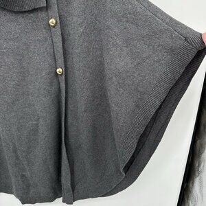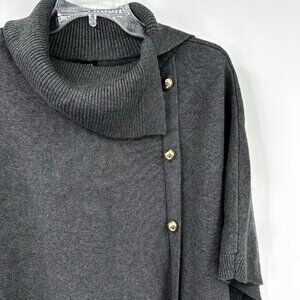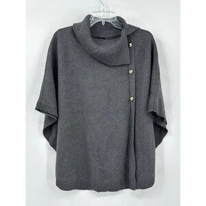 NEW TALBOTS sweater cowl neck cape shawl poncho charcoal gray knit casual L
