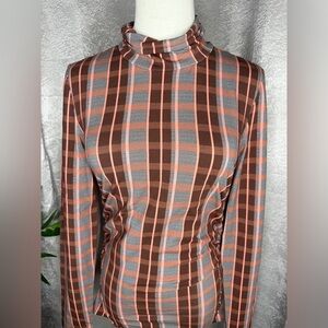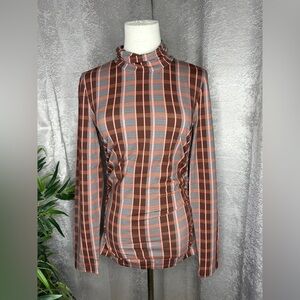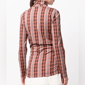 NEW TANYA TAYLOR Red Shelby Grid Print Organic Cotton Turtleneck Top XS