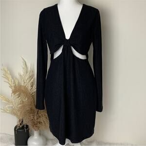 NEW TARGET Wild Fable Black Sparkly Metallic Long Sleeve Mini Dress Cutouts XXL