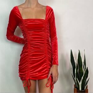 NEW TARGET Wild Fable Red Long Sleeve Ruched Tie Velvet Bodycon Mini Dress XL