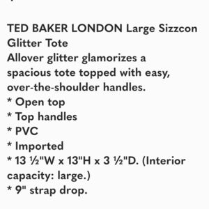 NEW TED BAKER LONDON Large Sizzcon Glitter Tote Bag Purse Glam Designer Summer