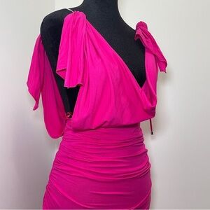 NEW! THE ATTICO- Plunge Neck Mini Dress Fushica Size Small Hot Pink