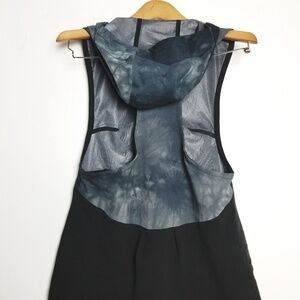 *Tie dye effect on top/french terry bottom/ hooded training vest. Low cut arm holes & racerback like style allows for mobility & low profile layering.