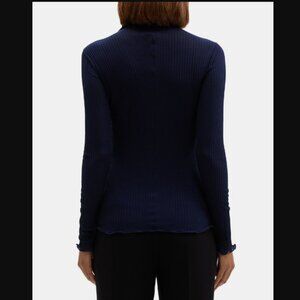 NEW THEORY Funnel Neck Tee Silk-Cotton Women TOP Long Sleeve Blouse MEDIUM