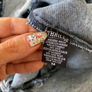 NEW THRILL Destroyed Long Denim Jacket Sz M