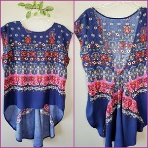NWT. This top is AWESOME! So pretty. Shorter in front with dramatic deep v and long draping hem in the back. Perfect for festival season as well as the beach!!