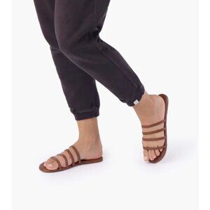 NEW TKEES Made In Brazil Leather Senna Flat Sandals in coco for women 7252j1