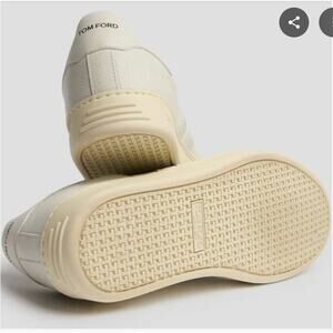 These TOM FORD sneakers feature a leather upper, a front lace-up closure, logo detail, and a rubber sole. These are low top sneakers from the 2025 collection in a size currently SOLD OUT. Retail value currently $990 plus tax, and has not gone on sale yet in the US.