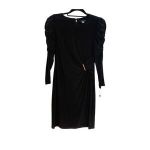NEW TOMMY HILFIGER Puff-Shoulder Jersey Sheath Dress Black Size 6