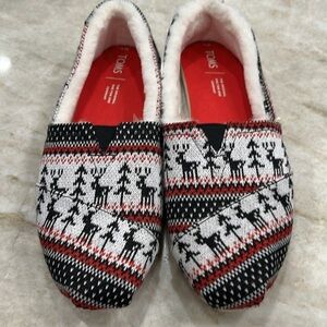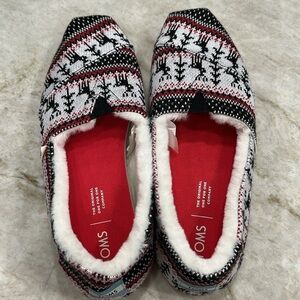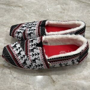 NEW TOMS Alpargata Slippers | Fair Isle Reindeer Print | Faux Fur Lined | Size 9