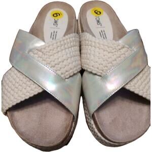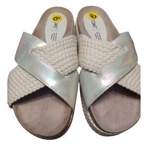 NEW TOMS Iridescent Woven Trim Leather Paloma Sandals Slides Size 9 NWT