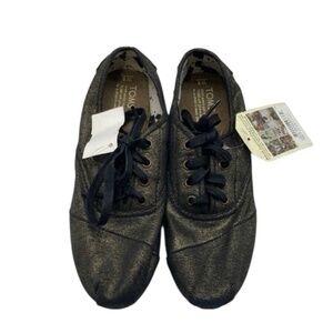 NEW! TOMS Women’s Gold Metallic Linen Cordones Casual Sneakers Size 8