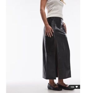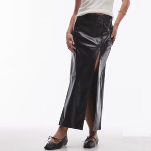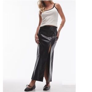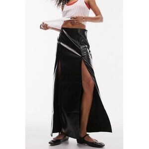 NEW TOPSHOP Black VINYL Double Slit FAUX LEATHER Rocker Chic MAXI SKIRT US 8