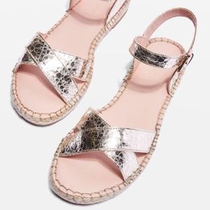NEW TOPSHOP GOLD EDDY ESPADRILLE SANDALS - 37 = 4UK/6-6.5 US. Brand new! Ships without box. I am a 6.5-7 and they fit me but it's pushing. If you are between a 6-6.5 though, they'll be perfect! Super cute and the rubber sole makes them very comfortable.