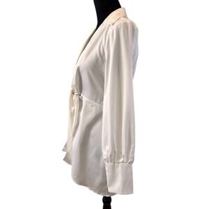 NEW TOPSHOP NORDSTROM Cream Twist Front Satin Mini Shirt Dress Size 6