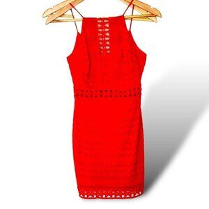 TOPSHOP WOMENS RED SLEEVELESS CROCHET LACE TRIM MINI DRESS SIZE 2 - New With Tags