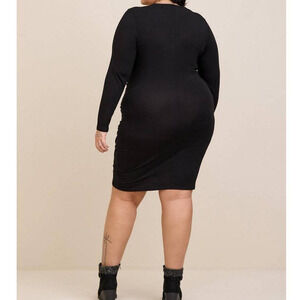 NEW TORRID Dress Ruched Gathers Plus Size 3X Cinched Bodycon Super Soft Black.
