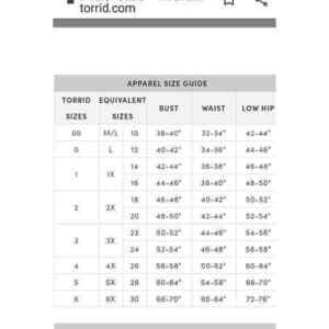 Torrid size chart is in pics as a courtesy and NOT a guarantee of fit