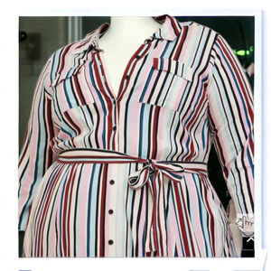 NEW TORRID Midi Shirt Dress Plus Size 2X Stretch Challis Button Front Stripes