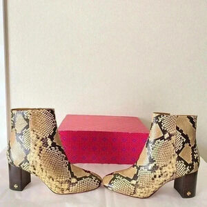 NEW TORY BURCH Brooke 70mm Block Heel Leather Python Sandrift Bootie Size 9.5