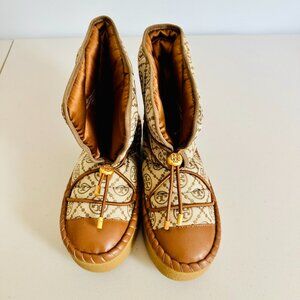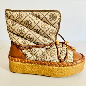 NEW TORY BURCH T SIGNATURE QUILTED CANVAS AND LEATHER SLEEPING BAG BOOTS