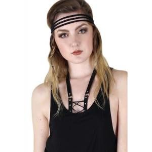 NEW TOUGH LUV corset lace up elastic halter harness in black