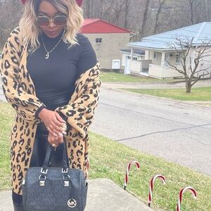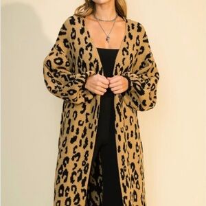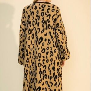NEW TRENDY OVERSIZED LEOPARD PRINT LONG CARDIGAN SWEATER STATEMENT SLEEVES