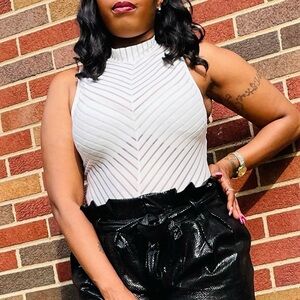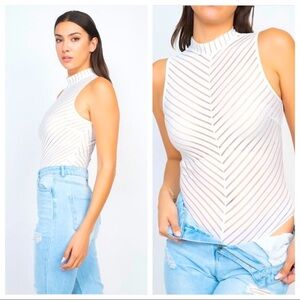 NEW TRENDY Off White Mesh Sleeveless Bodysuit