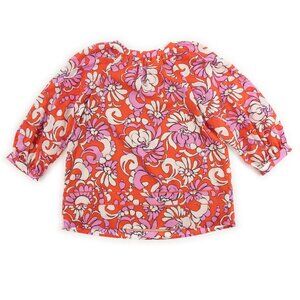 NEW Trina Turk women's Light Hearted Top (org $288) pink/red pattern silk A-Line Balloon Sleeve Flora Flora Print top