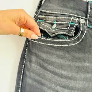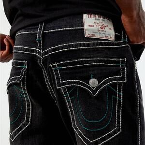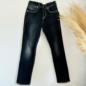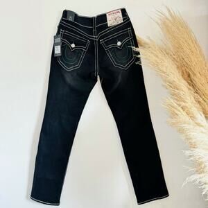 NEW TRUE RELIGION MENS Black White Ricky Relaxed Straight Leg Denim Jeans 30