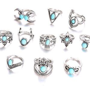 NEW TURQUOISE STACK BOHO VINTAGE STYLE RING SET