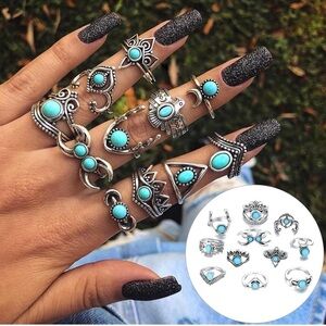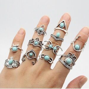 NEW TURQUOISE STACK BOHO VINTAGE STYLE RING SET