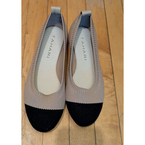 NEW Tahari Ballet Flats Naples Two Tone Tan & Black Size 6.5