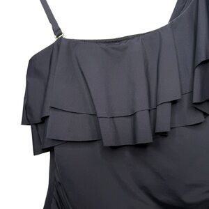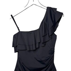 NEW Tahari Black One Shoulder Women’s Ruched One Piece Swimsuit Sz S