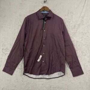 NEW Tahari Mens M Regular Fit Stretch Button-Up Shirt Red/Blue Print Medium