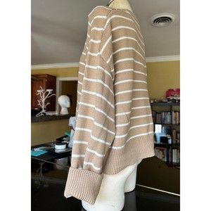 T Tahari Saddle Stripe Long Sleeve Sweater in tan/camel & cream, size XL (14/16).