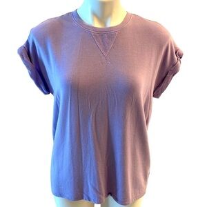NEW Tahari lilac tee rolled sleeves scoop neck Softest cozy material Small C